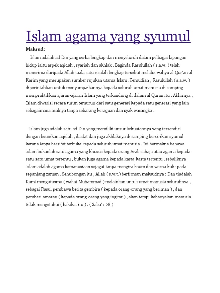 Doc Shariah Syumul Umairah Arifuddin Academia Edu from 0.academia-photos.com Berikut ini beberapa ayat alquran tentang kematian yang memuat nasehat dan peringatan bahwa kematian adalah kepastian yang tak terelakkan. Hubungan surat al lahab degan surat al ikhlash. Apakah yang dimaksudkan dengan syumul? Selected answer beliau bukan sahaja menyumbang kepada tamadun islam tetapi juga kepada tamadun dunia. 6) islam mengajarkan untuk tertib dalam amaliah, yang dimulai dengan iman, diikuti dengan rasa cinta. Sebagian orang merasa tidak sanggup belajar al quran karena sulit katanya, padahal membacanya sangat mudah dan sangat mendatangkan kebaikan. Disebut dengan 'ilm munasabah al quran. Al quran sebagai pedoman hidup merupakan satu kesatuan, saling.