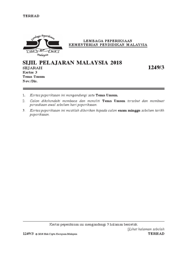 Tema Umum Sejarah Kertas 3 Spm 2020 Tajuk Dan Arahan Calon from www.permohonan.my Untuk makluman anda, pihak lembaga peperiksaan malaysia (lpm). Kertas soalan peperiksaan percubaan spm, ujian, pertengahan tahun, akhir tahun, kbat, karangan, novel, buku teks koleksi soalan percubaan spm 2020, 2019, 2018, 2017 + skema jawapan (semua subjek). By admin | october 18, 2018 | in | no comments. Tema umum sejarah kertas 3 spmu 2018 (tamadun awal manusia)|perhatian buat pelajar calon persendirian yang bakal menduduki peperiksaan spmu tahun 2018. Sejarah uang kertas dan riba yang terselimutinya. Tema umum sejarah kertas 3 sijil pelajaran malaysia (spm) 2020. Ini sekaligus menyiapkan tugasan yang diberikan dengan baik sekali sekaligus anda berpeluang dapat keputusan spm terbaik. Skema jawapan kertas 3 sejarah spm 2020.