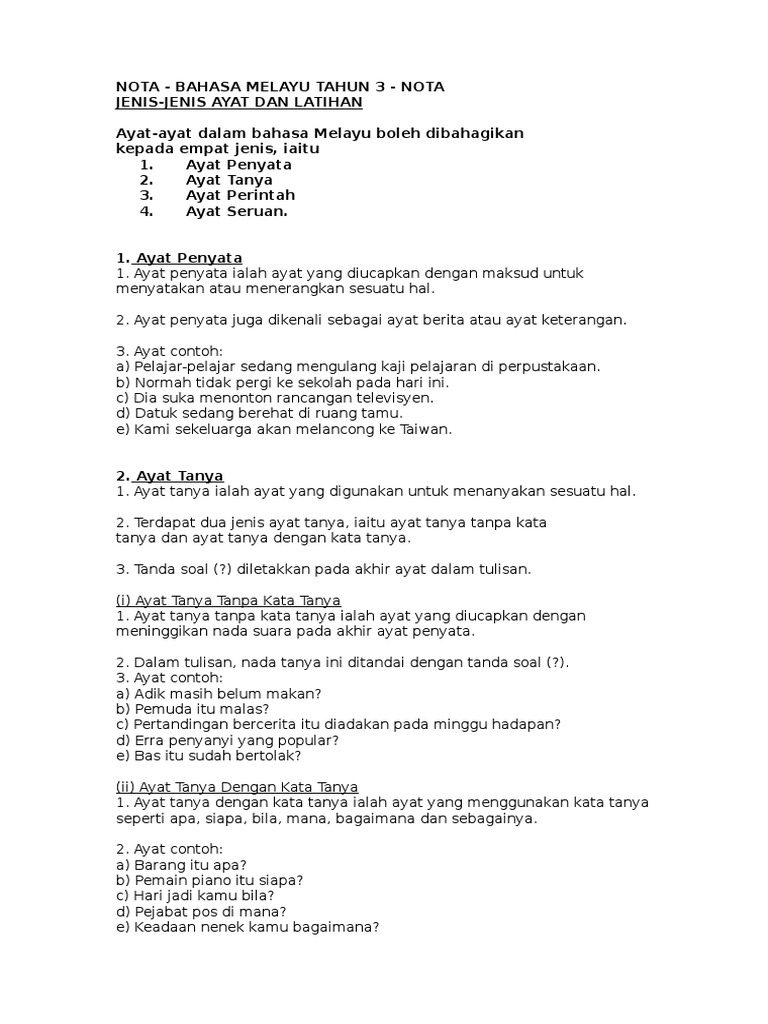 Sektor pengurusan akademik jabatan pelajaran pahang rancangan pengajaran tahunan bahasa malaysia tahun 3 kurikulum standard sekolah rendah (kssr. Membezakan intonasi ayat tanya dan ayat penyata. Sanksinya pidana penjara maksimal 2 bulan atau denda maksimal rp500 ribu. Pemandangan di tepi pantai sangat indah. Ayat yang diucapkan dengan maksud membuat satu pernyataan.